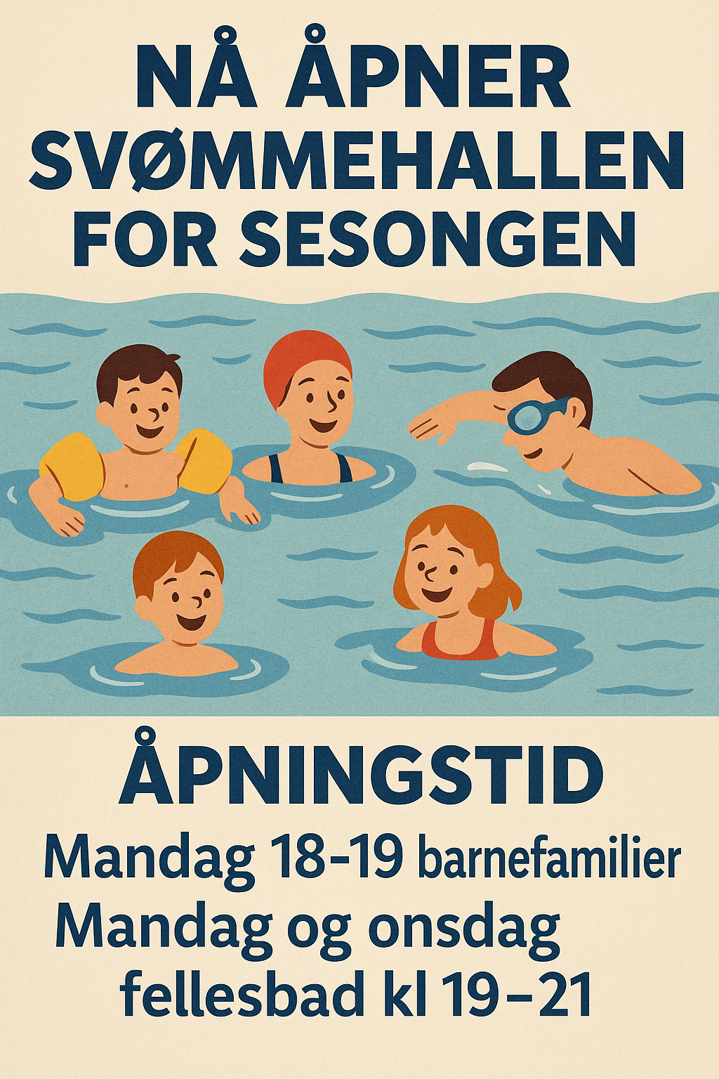 Nå venter svømmebassenget med 4 baner av 12,5 m lengde, 2 garderober og badstu på å bli fylt opp av barn, unge og voksne igjen!