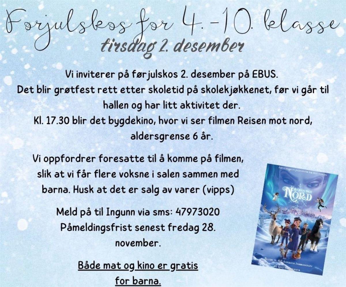 Førjulskos for 4.-10.klasse med frivilligsentralen og Juniorklubb`n rett etter skoletid: