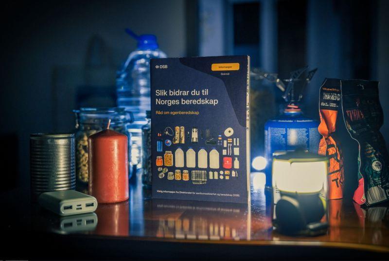 - få med deg DSBs brosjyre om hvordan du kan klare deg i minst sju døgn uten strøm, vann og internett