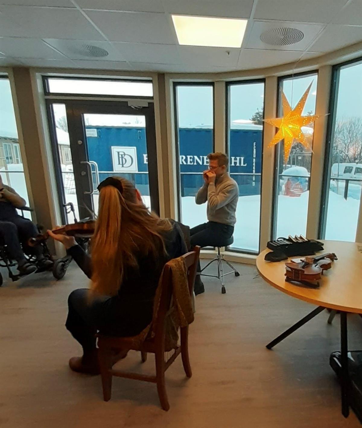 Konsert på sykehjemmetOnsdag 29. november hadde vi hyggelig besøk av Stubsveen & Lillebo på sykehjemmet. Trivelig med besøk av lokale musikere og ca. 20 tilhørere koste seg med flott musikk.Konserten var i regi av Den kulturelle spaserstokken.Konsert på sykehjemmet med Sigrid Stubsveen og Anders Lillebo Kristin Opgård Publisert av Lene Stensaas Rismyhr Publisert 01.12.2023 14:29