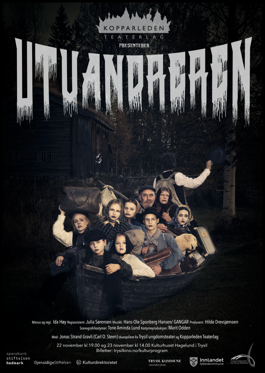 Kopparleden Teaterlag, Trysil Ungdomsteater og Trysil kommune med teaterleir i uke 41 for påmeldt ungdom, inviterer til teater i kulturhuset Hagelund 22. november kl. 19-20.30 og 23. november kl. 14-15.30.