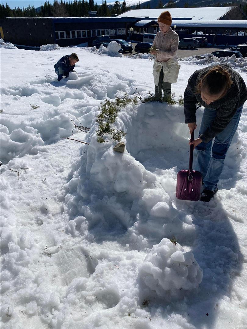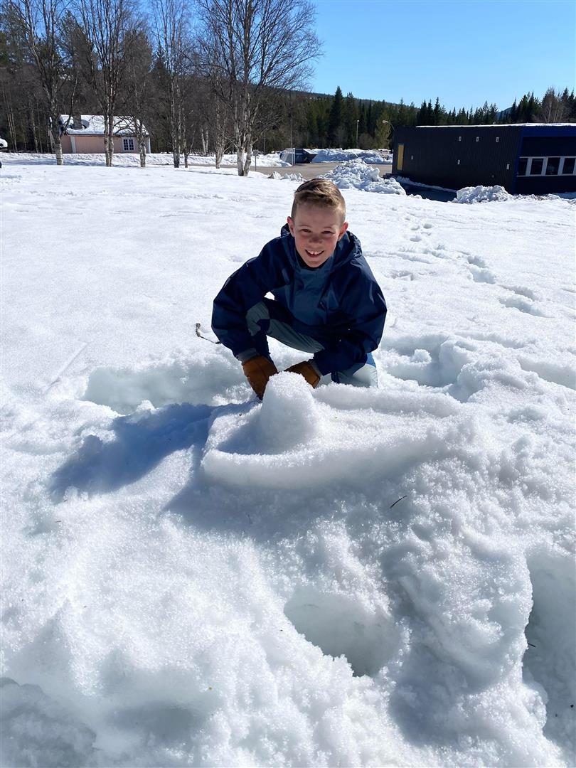 Vi hadde delt elevene inn i grupper. Det var rebusoppgaver der gruppene skulle løse oppgavene i fellesskap. Vi hadde også en stafett der en norsk og en minoritetsspråklig elev gikk sammen på hver etappe og svarte på spørsmål. I matpausa var det mulig å grille oppe ved lavvoen. Etter mat var det ny gruppeoppgave der de skulle bruke kreativiteten sin og lage en skulptur i snø. Det var full innsats hele dagen, og når vi oppsummerte sammen med fruktspising på slutten av dagen, var det mange slitne og våte elever som var veldig fornøyd med dagen 😊